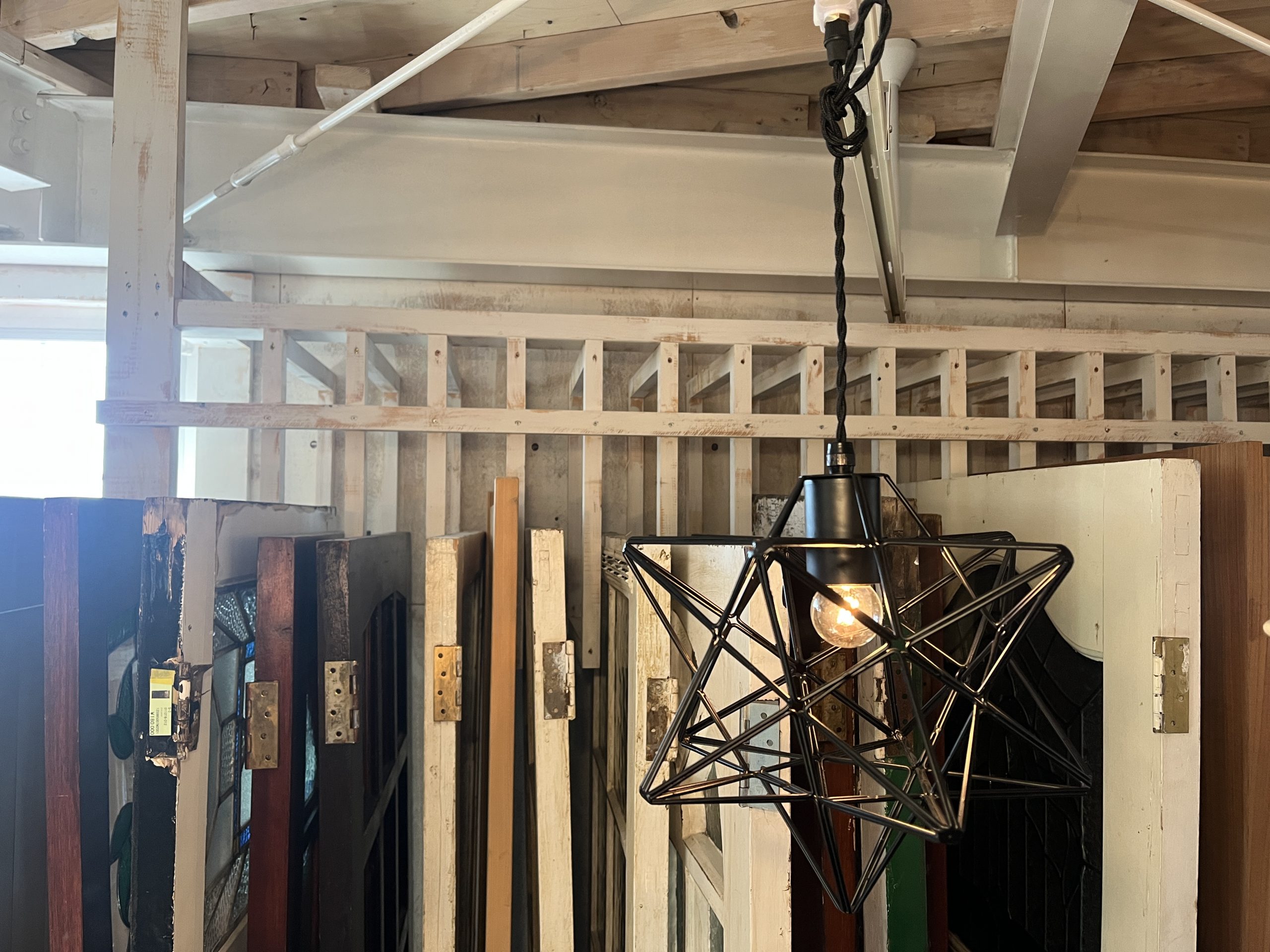 二階にはこのような商品の他に天井にはたくさんのペンダント照明が吊る下がっています。